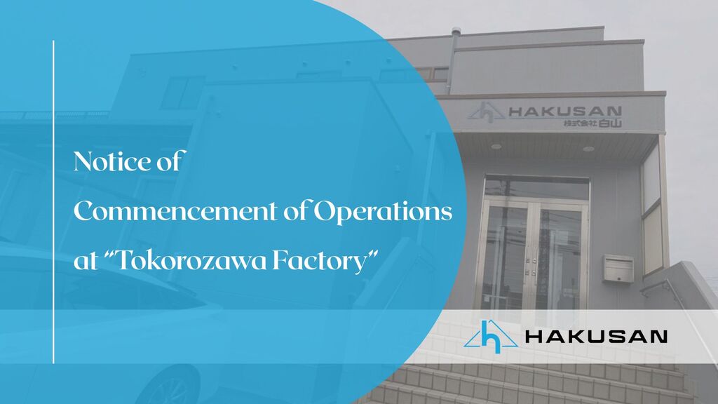 Hakusan Inc. will begin full-scale operations at its new Tokorozawa Factory in Tokorozawa City, Saitama Prefecture in June 2025.
