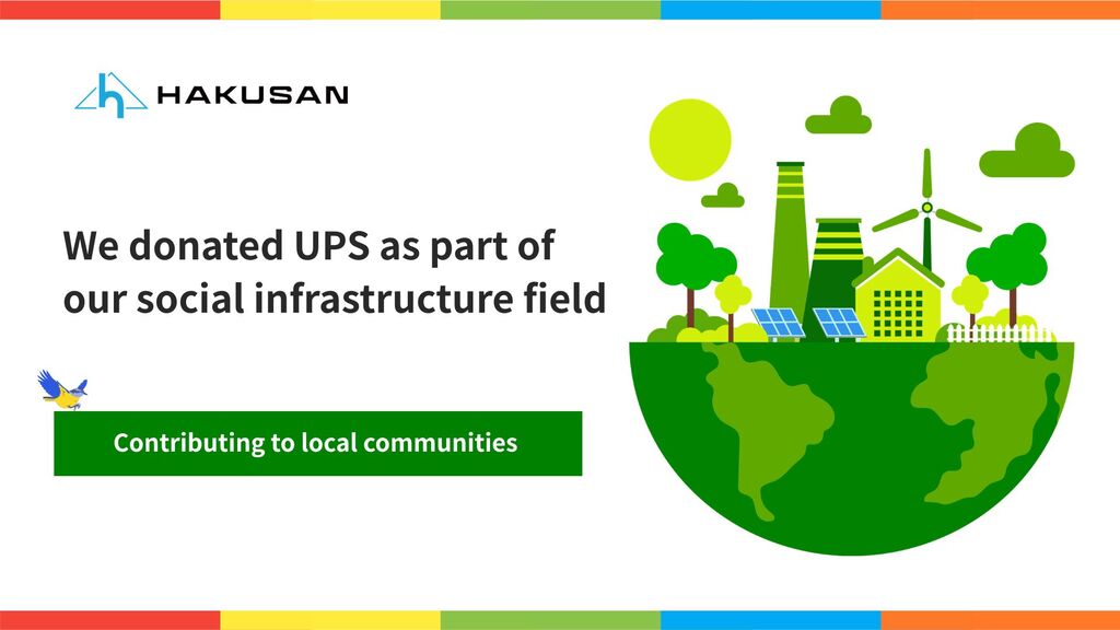 As part of our social infrastructure projects, we have been continuously donating uninterruptible power supplies (UPS) to support power supply during disasters and emergencies.